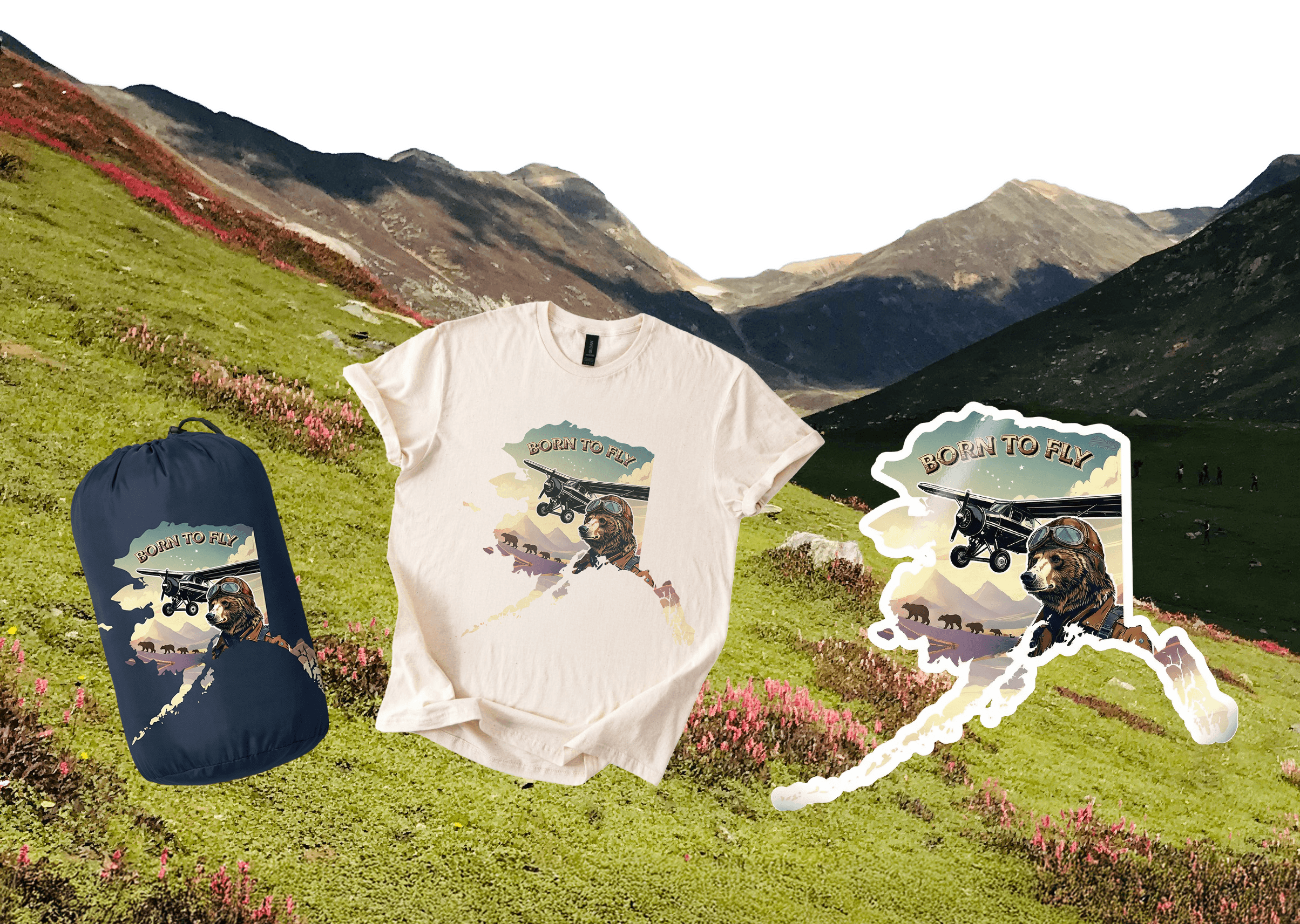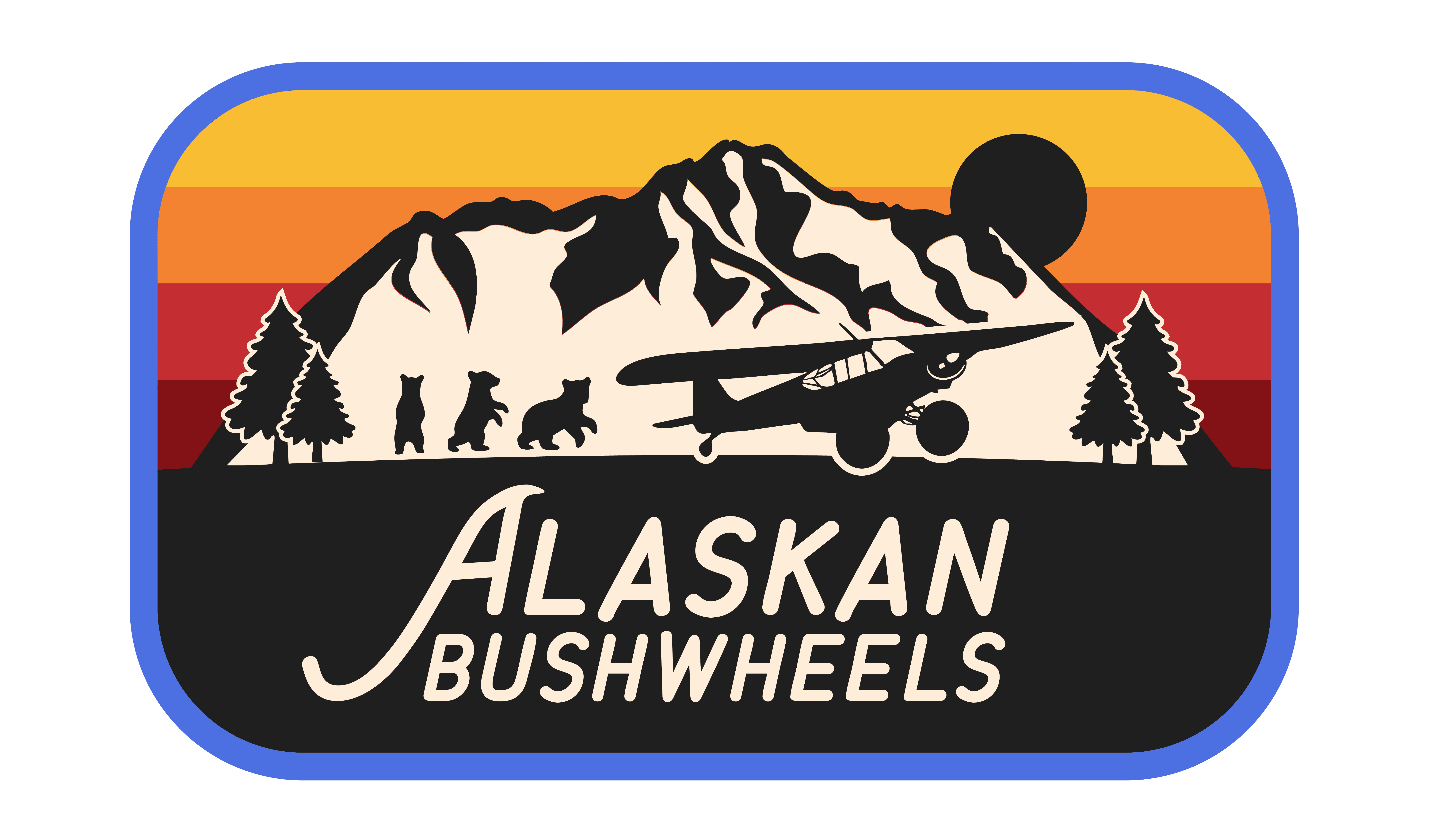 This collection draws inspiration from retro aviation badges and vintage national park souvenirs, nodding to the heritage and fortitude of bush flying culture. The patch features three bear cubs trailing a Super Cub in flight, set against Pioneer Peak, a prominent landmark near Palmer, linking the aircraft with both local wildlife and the surrounding terrain. Each colorway is derived from Alaskan seasonal palettes: warm reds and oranges reference the glow of summer’s midnight sun, while cooler purples, blues, and greens echo the northern lights of winter. The scene is intentionally familiar, designed to strike a chord with both locals and visitors through imagery that feels unmistakably Alaskan.