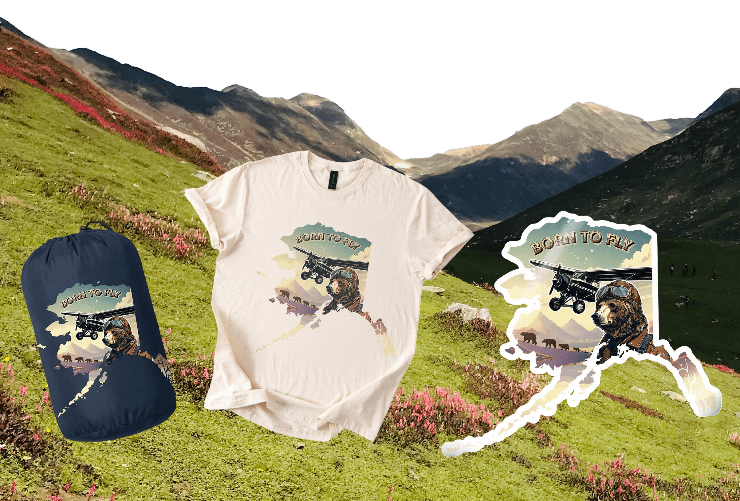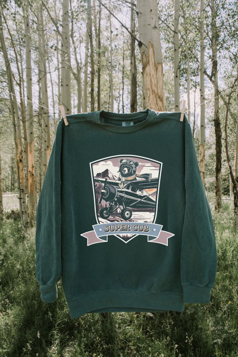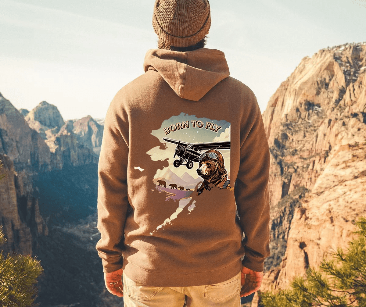 This collection draws inspiration from retro aviation badges and vintage national park souvenirs, nodding to the heritage and fortitude of bush flying culture. The patch features three bear cubs trailing a Super Cub in flight, set against Pioneer Peak, a prominent landmark near Palmer, linking the aircraft with both local wildlife and the surrounding terrain.