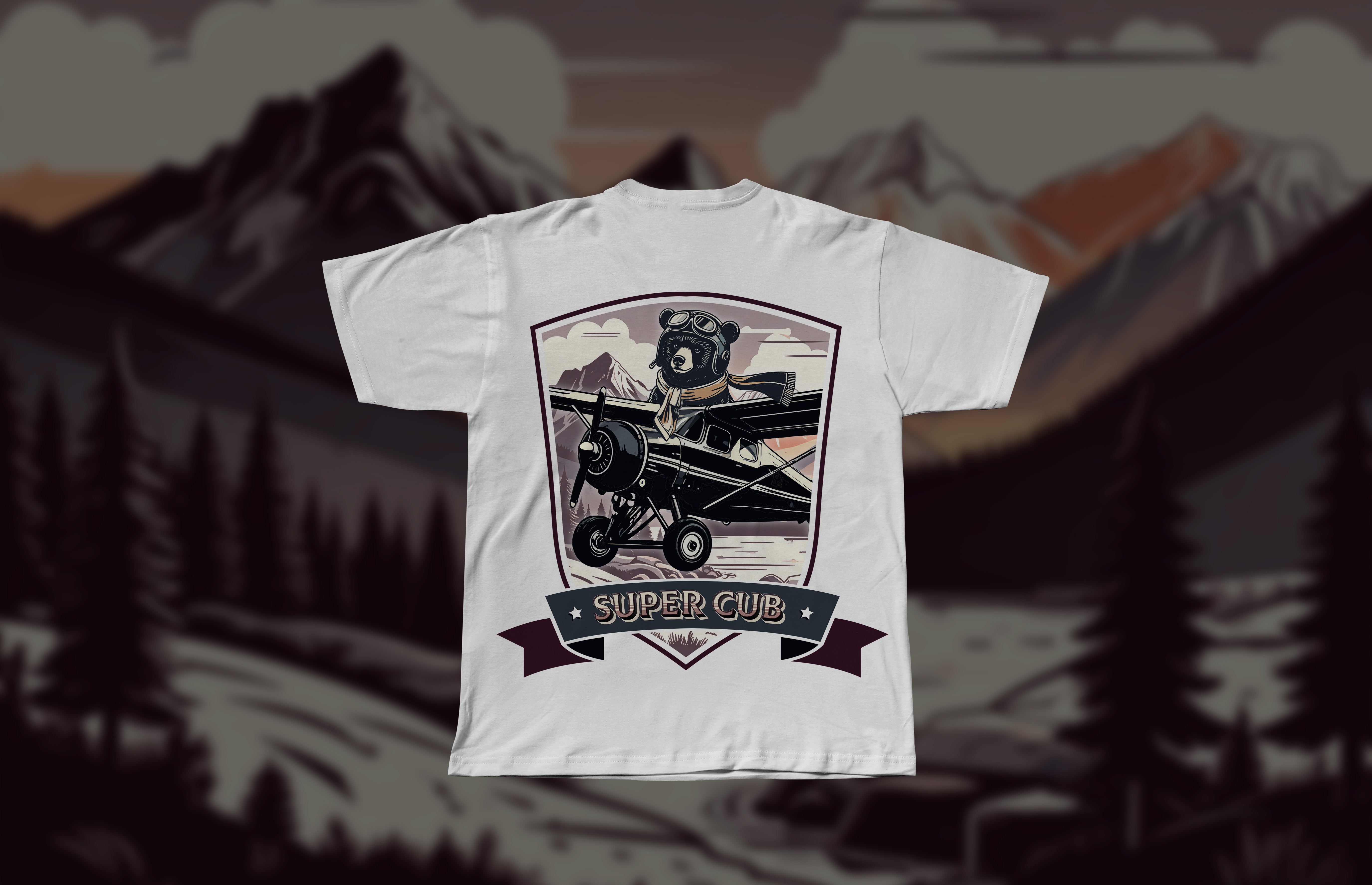 This final design honors Alaska’s aviation heritage and its deep connection to the land, wildlife, and people who call it home. The piece offers another interpretation of the Super Cub mascot, drawing on the grizzley bear’s symbolism as a guardian and protector. Traits like strength, courage, and independence mirror those of skilled bush pilots and reinforce the aircraft’s role as a trusted companion in remote landscapes. Set beneath the Big Dipper and the North Star, the scene references both Alaska’s flag and its history of celestial navigation during long seasons of darkness. In a place defined by fleeting summers and extended winters, the pursuit of light becomes a way of life. This design celebrates exploration, endurance, and the resilient spirit of flight that continues to shape life in the Last Frontier.