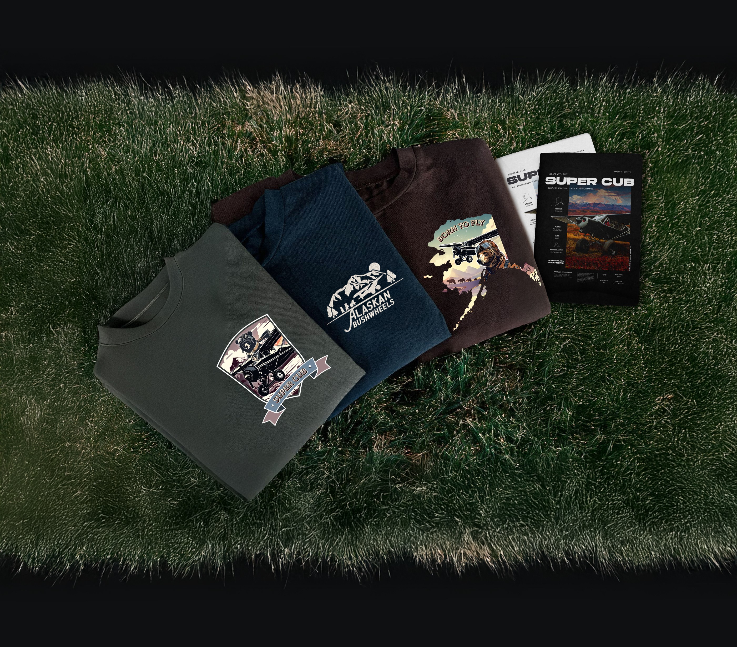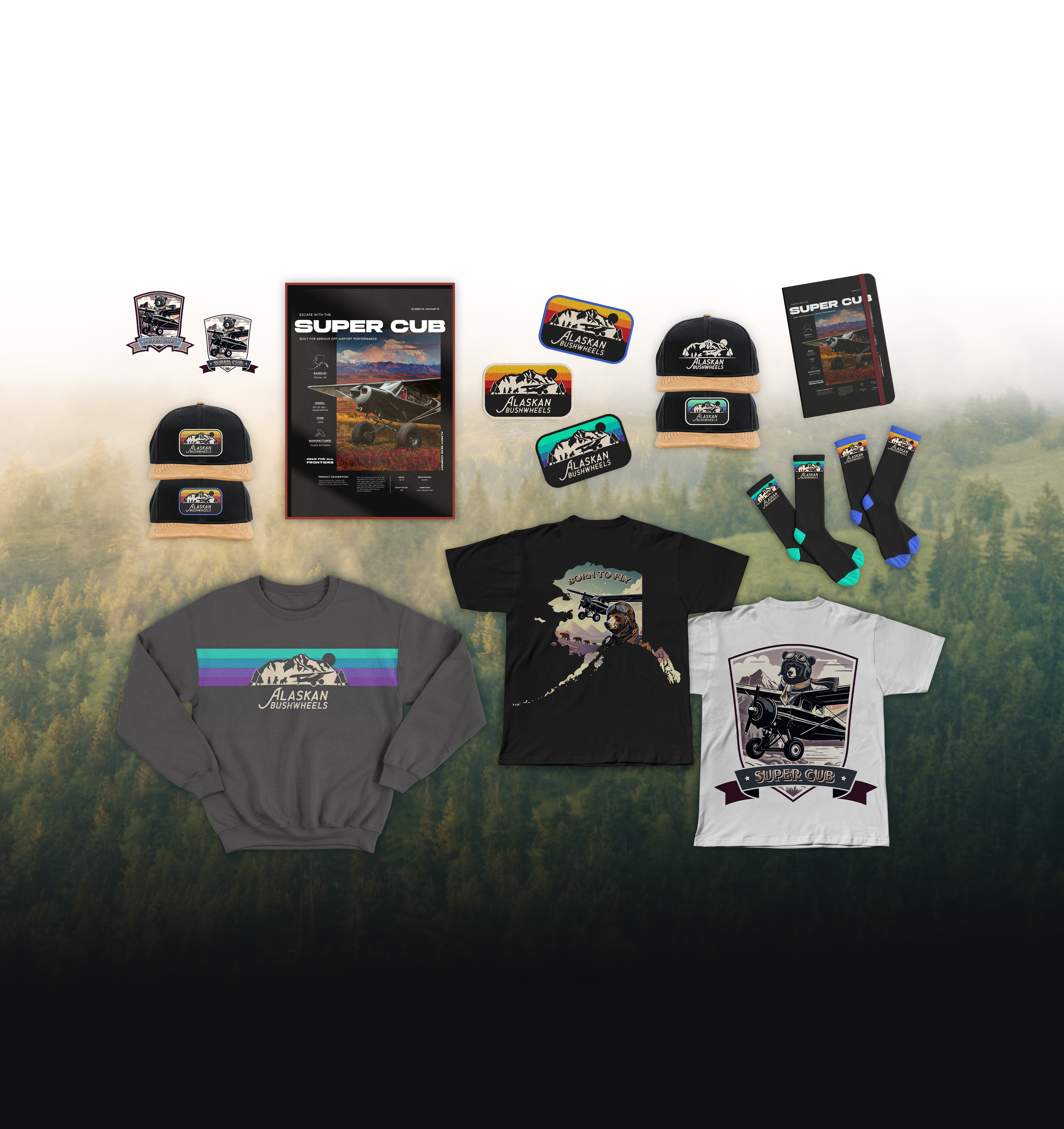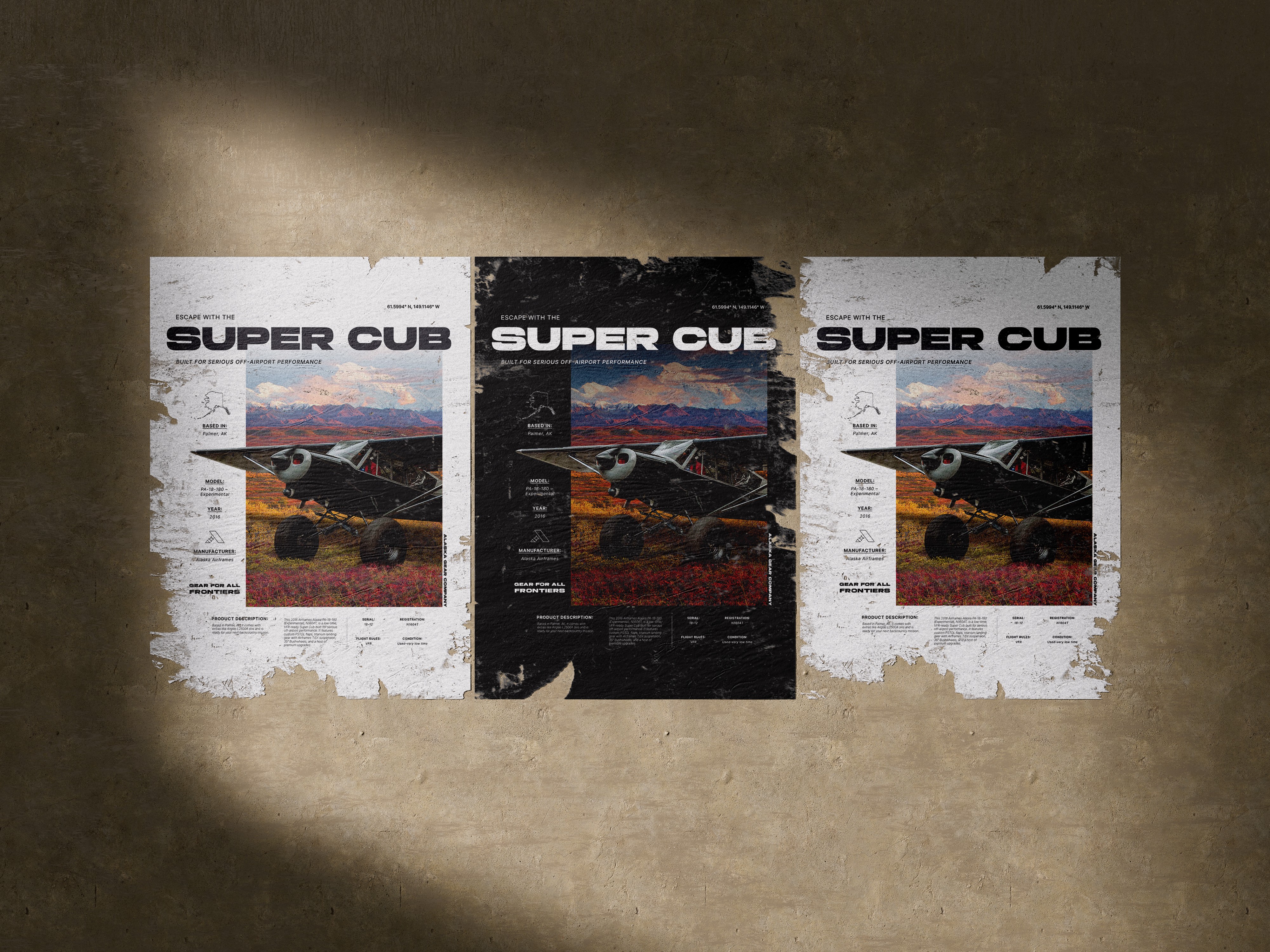 The PA-18 Super Cub is a bush plane revered for its ability to access Alaska’s most remote, rugged terrain. Built for backcountry landings and low-altitude exploration, it's not only a tool, but a cultural and historic icon to those occupying the Last Frontier. This project challenged me to design various promotional assets for the Super Cub with an emphasis on merchandise, highlighting both the technical strengths of the aircraft and the lifestyle it represents.